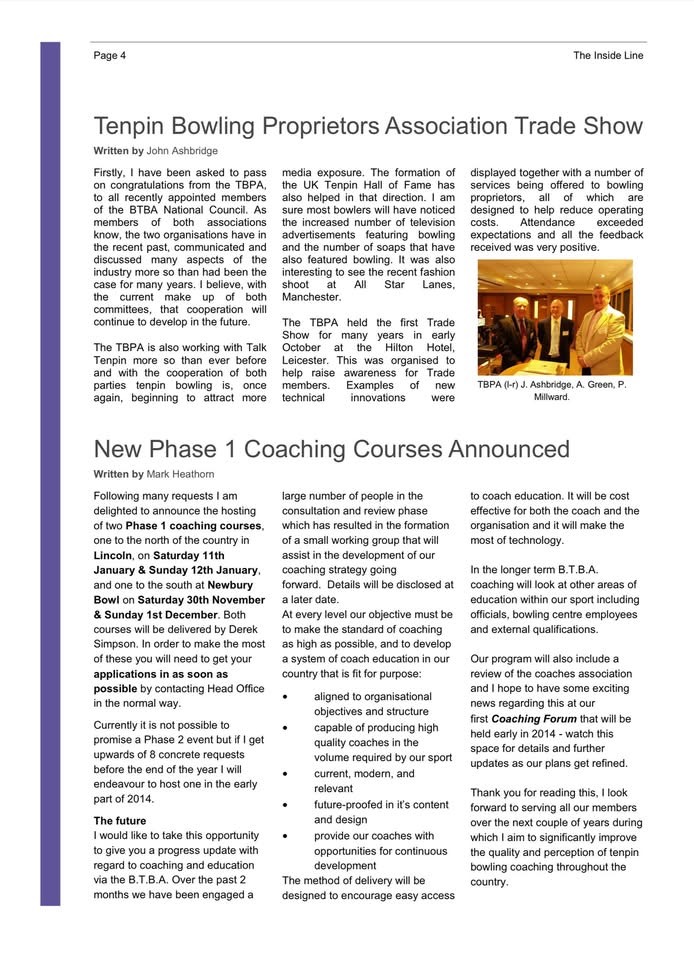 Starting back in November 2013, the BTBA began a second series of electronic ‘e-zines’ called The Inside Line.