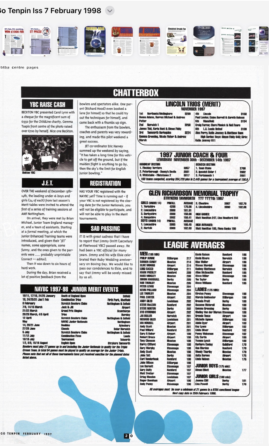 Back in August 1997, the BTBA produced a bi-monthly collection of news and member interest pages which were published within the Go Tenpin magazine.